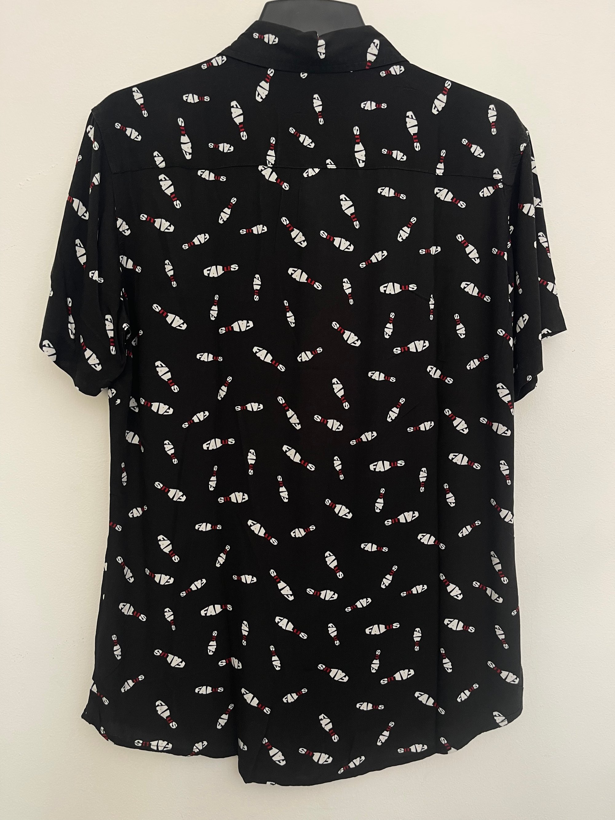 Fabricada con 100% Rayon, tiene un fit de camisa Hawaiana. Conviértete instantanamente en el Gran Lebowski con esta camisa con full print con bolos.