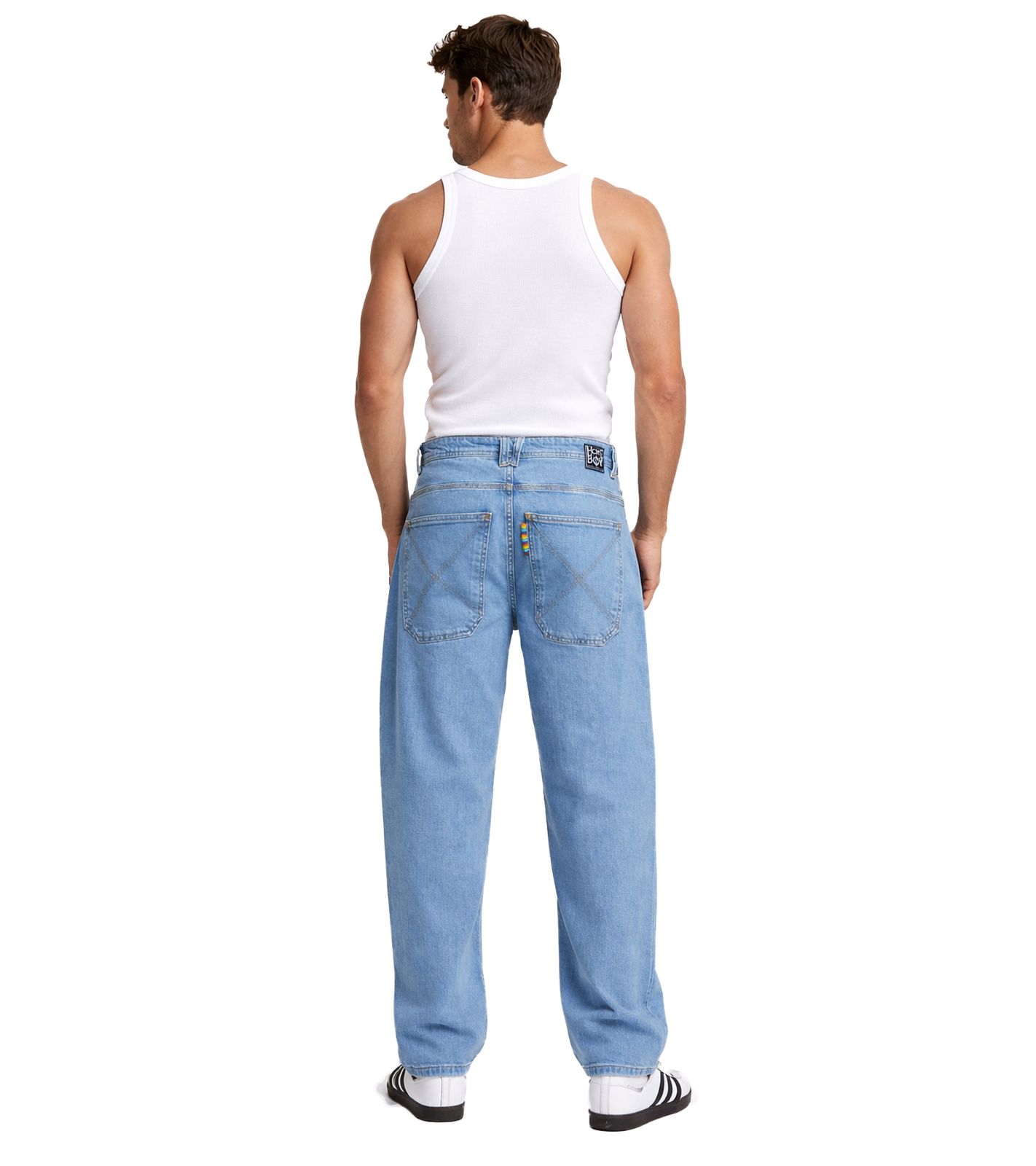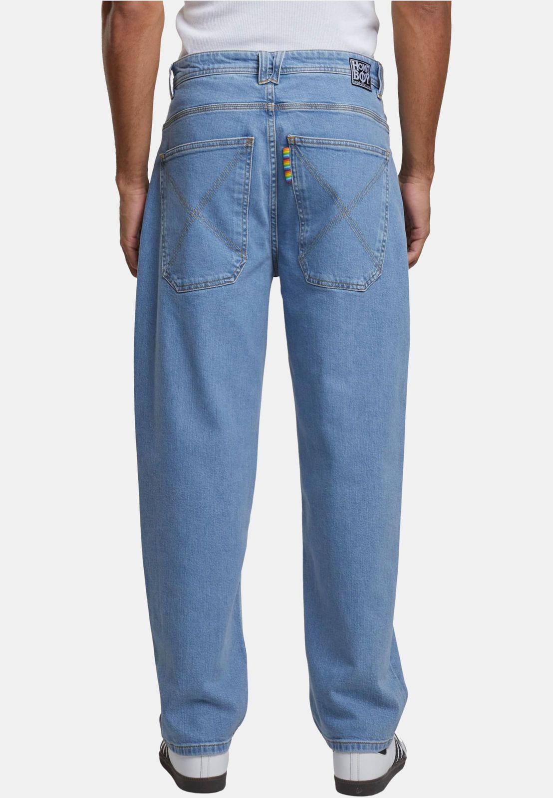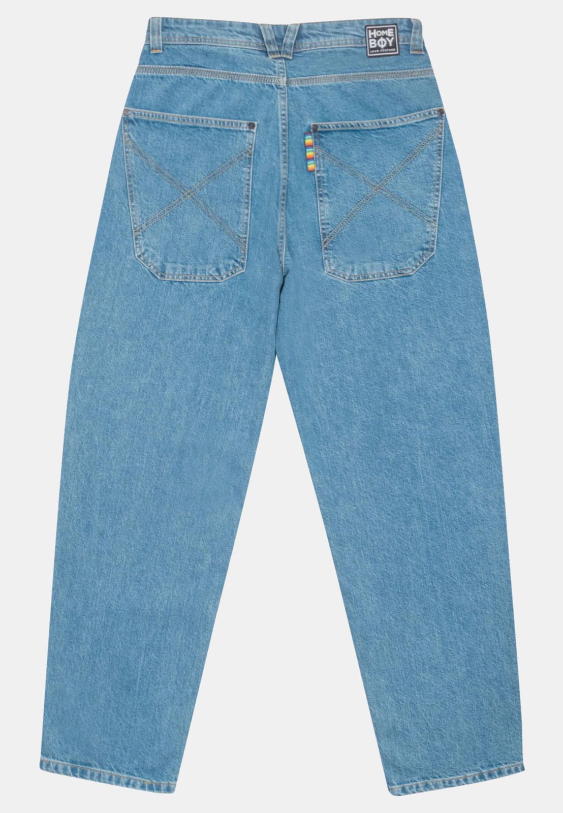 " Nuestros vaqueros holgados tienen un estilo clásico vintage, ya que hemos reproducido fielmente los detalles clave de los años 90. Entre ellos se incluyen el bordado multicolor "homeboy x-tra" bajo la cinturilla, la bragueta con estampado de arcoíris y el bordado de la X en el bolsillo trasero. El bolsillo trasero también tiene un corte ligeramente más bajo, como en aquella época, lo que le da a los pantalones un aspecto aún más relajado.